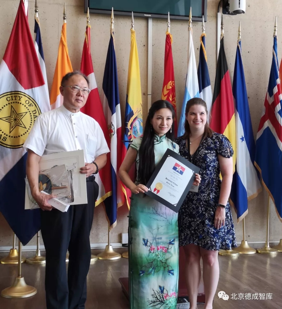 曹軼秋女士在達(dá)拉斯市政廳被授予榮譽(yù)市民稱號(hào)